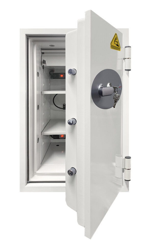 It comes fitted with a wireless alarm and smoke detector. Moreover, the safe benefits from an externally placed warning label. The label is in accordance with ISO 3864 and ISO 7010 and European directive 92/58/EEC.