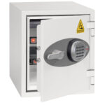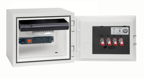 Finished in a high quality, easy clean, white scratch resistant paint that makes this Phoenix Safe Battery Titan BS1281E look good in any office environment..