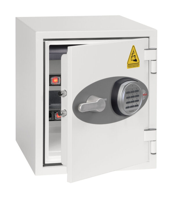 Finished in a high quality, easy clean, white scratch resistant paint that makes this Phoenix Safe Battery Titan BS1282E look good in any office environment..