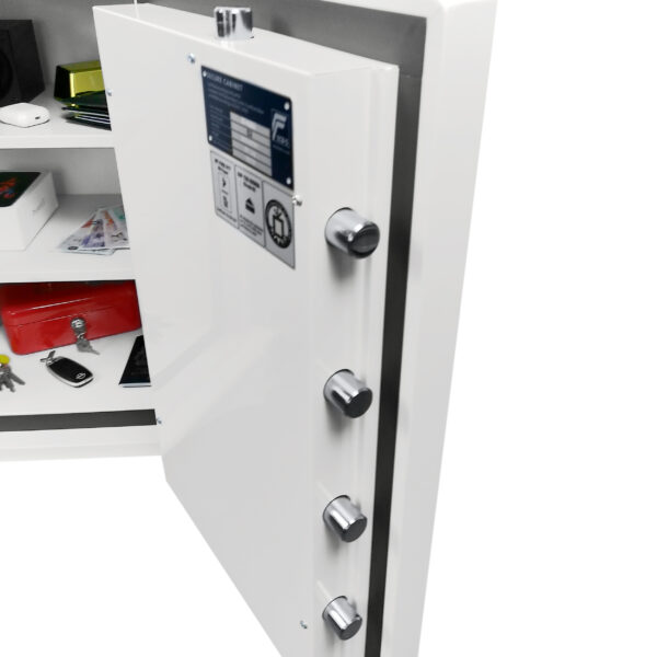 Fitted with a high security VdS Certified electronic code lock. Its master code allows you to modify its user code operation. In the event of loss of battery power, this retains its programmed code.