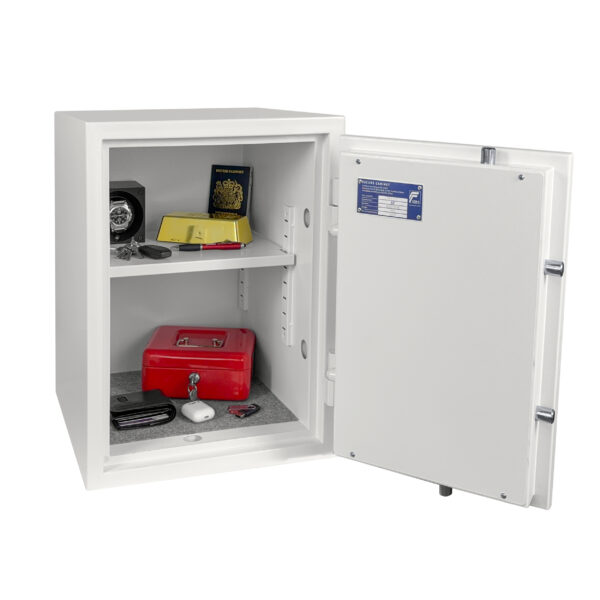 This Phoenix Safe Fortress SS1453E is £4000 cash rated, or, is suitable for storing up to £40,000 of valuables. Subject to confirmation from your Insurer or Broker. Certified EN1440-S2. (ECB. S) Certified and UK Police approved under the Secured be design scheme. Insurer approved by the Association of Insurance surveyors (AiS).