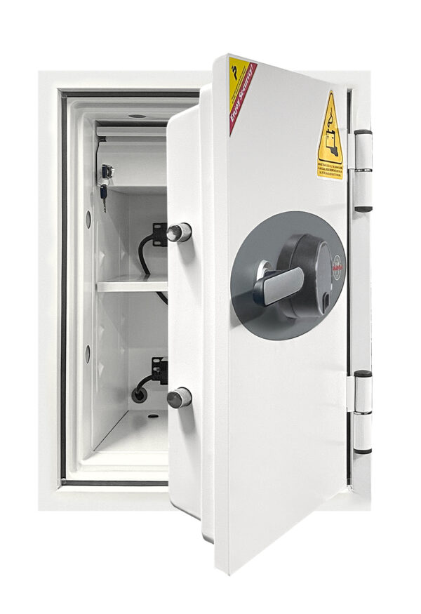 It comes fitted with a wireless alarm and smoke detector. Moreover, the safe benefits from an externally placed warning label. The label is in accordance with ISO 3864 and ISO 7010 and European directive 92/58/EEC.