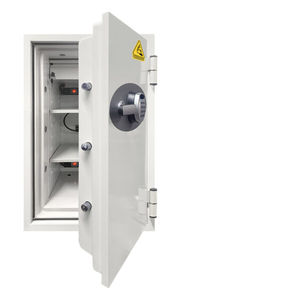 It comes fitted with a wireless alarm and smoke detector. Moreover, the safe benefits from an externally placed warning label. The label is in accordance with ISO 3864 and ISO 7010 and European directive 92/58/EEC.